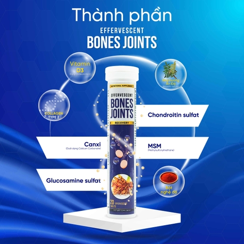 - Sự kết hợp của Vitamin D3, Glucosamine, Boswellia và MSM,... trong EFFERVESCENT BONES JOINT tăng cường hệ miễn dịch, bảo vệ cơ thể khỏi nhiễm trùng và bệnh tự miễn, đảm bảo sức khỏe toàn diện cho người dùng.